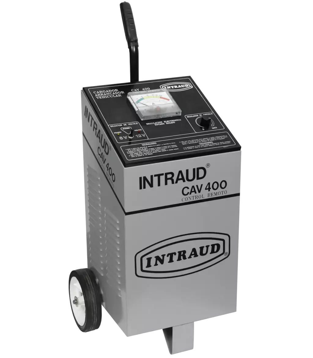 El CAV-400 es un cargador arrancador portátil de 6 /12V con 400 amp de arranque para uso profesional. Cuenta con una regulación continua de intensidad de carga y amperímetro. Posee un comando a distancia que permite realizar la operación de arranque con una sola persona.