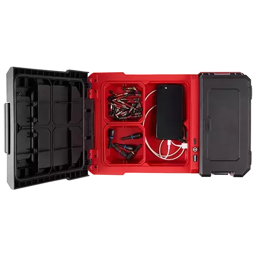 Nuestra luz intensa M12™ PACKOUT™ con carga por USB proporciona la salida máxima en un diseño compacto y fácil de transportar. Nuestra luz intensa compacta y portátil genera 1,400 lúmenes de salida TRUEVIEW™ de alta definición y es compatible con apilado superior en nuestro sistema de almacenamiento modular PACKOUT™. El cabezal de iluminación puede girar en 300 grados horizontalmente y en 180 grados verticalmente para un control completo del cabezal de iluminación. Con tres modalidades diferentes (alto, medio, bajo), se puede ajustar la salida y el tiempo de operación según el trabajo, con hasta 12 horas de tiempo de operación con una batería M12™ XC 4.0. Esta luz también incluye almacenamiento integrado con dos contenedores de almacenamiento para optimizar el espacio y la organización. Nuestra luz PACKOUT™ le permite cargar dispositivos con los puertos USB-A y USB-C 2.1 A, mientras almacena elementos pequeños dentro del compartimiento de almacenamiento. Hecha para soportar las condiciones más difíciles, esta luz tiene clasificación IP54, está clasificada para caídas, y cuenta con una garantía de 5 años para la herramienta y una garantía limitada para el LED.